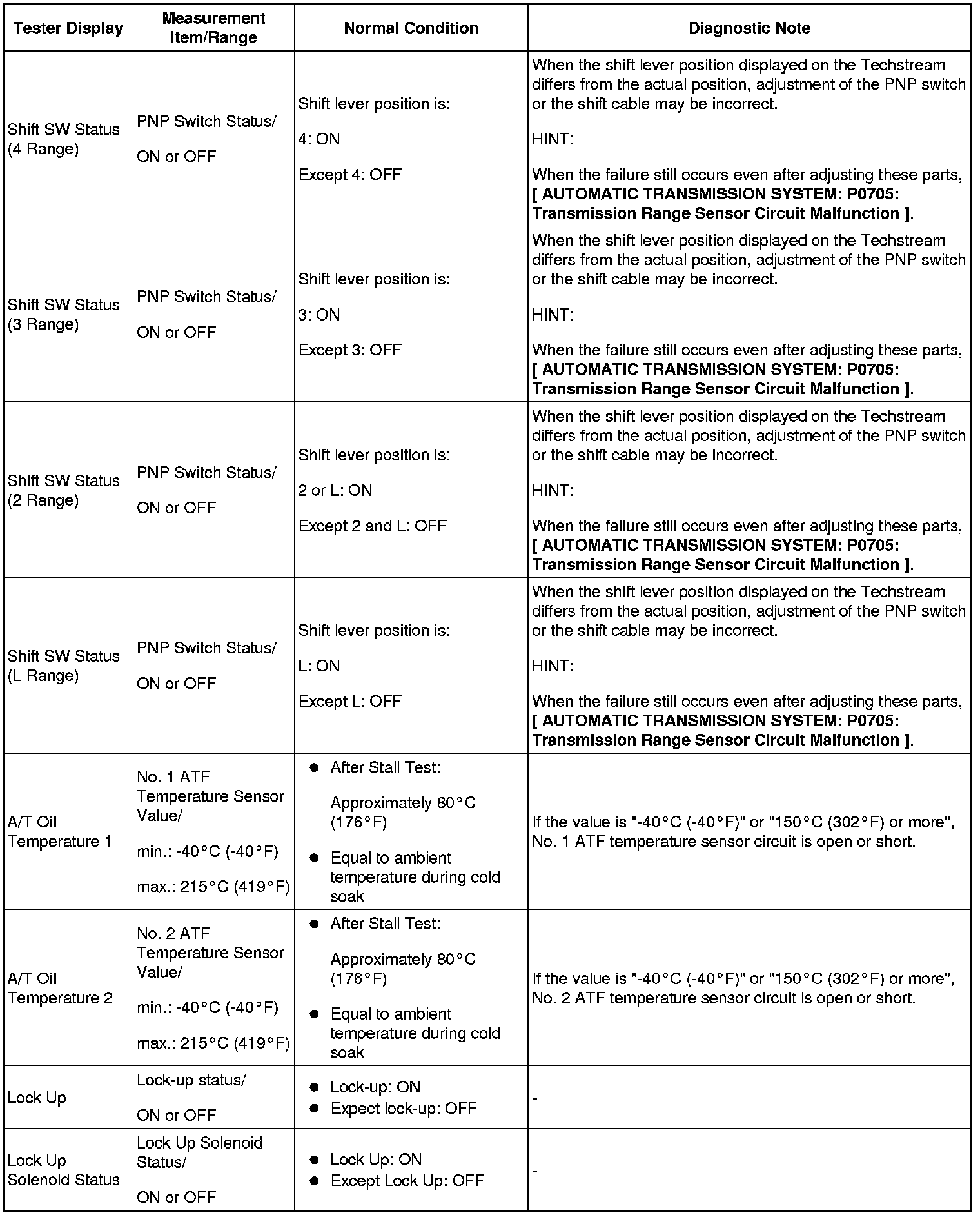 A750E AUTOMATIC TRANSMISSION SYSTEM: DATA LIST / ACTIVE TEST