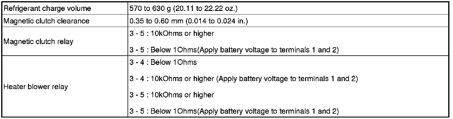 SERVICE SPECIFICATIONS: AIR CONDITIONING: SERVICE DATA
