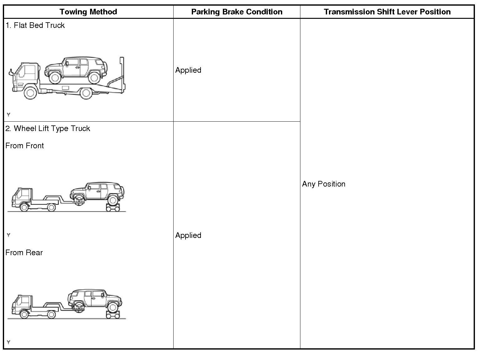 - If the vehicle has trouble in the chassis and drive train, use method 1 (flat bed truck).