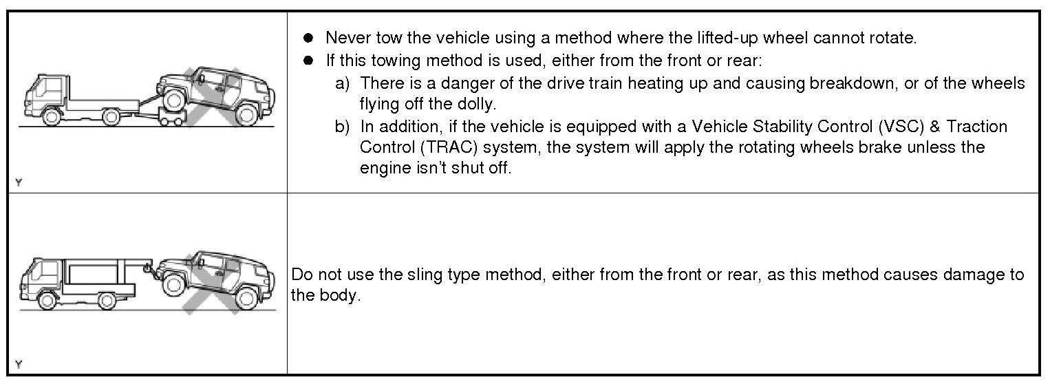 - For example, the towing methods shown below are dangerous or may damage the vehicle, so do not use them.