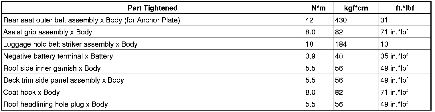 SERVICE SPECIFICATIONS: INTERIOR: TORQUE SPECIFICATIONS