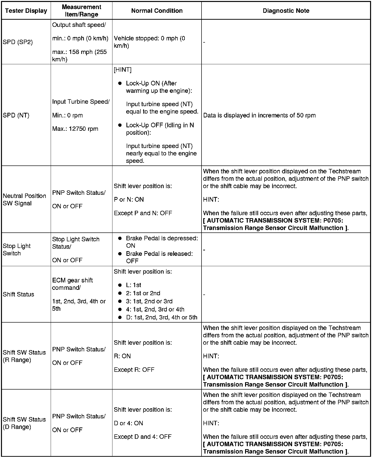 HINT: According to the Data List displayed on a Techstream, you can read the values of components, such as the switches, sensors and actuators, without removing any parts. Reading the Data List as a first step of troubleshooting is one method of shortening labor time.