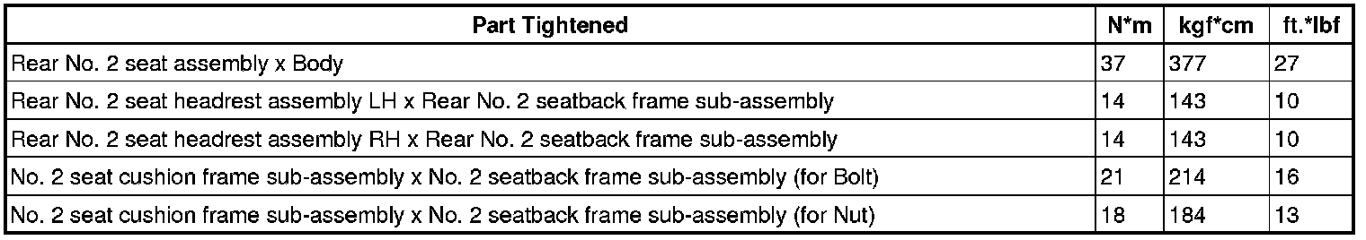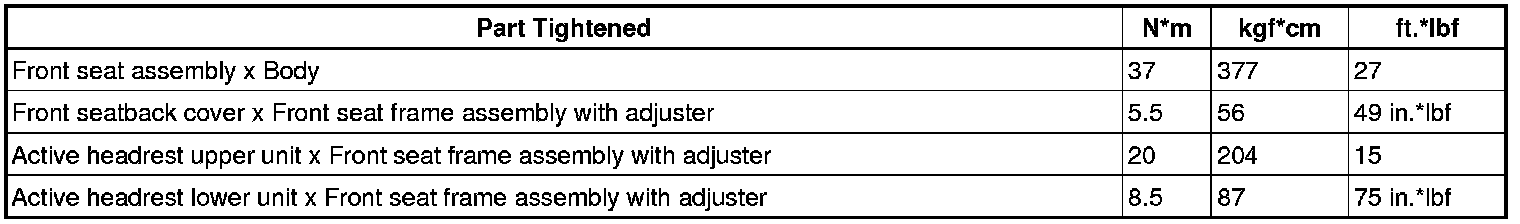 SERVICE SPECIFICATIONS: SEAT: TORQUE SPECIFICATIONS