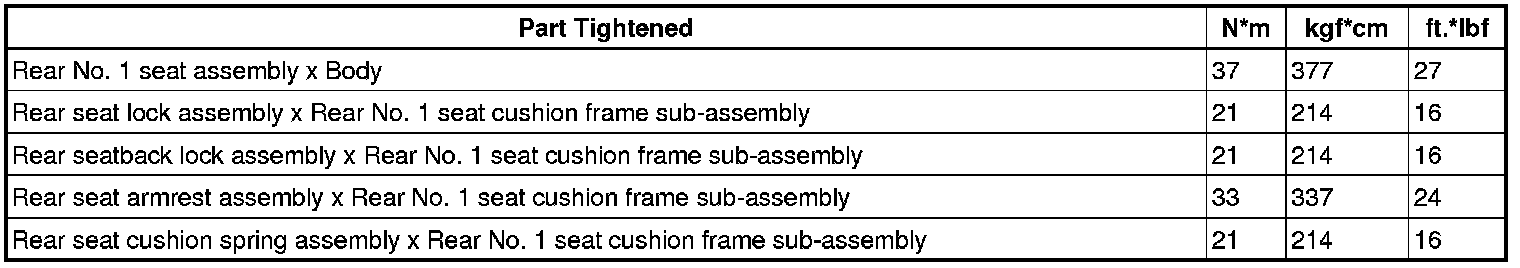 REAR NO. 1 SEAT ASSEMBLY (for RH Side)