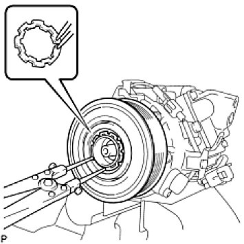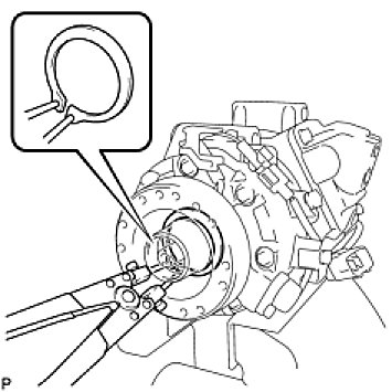 (d) Using a snap ring expander, remove the snap ring and then remove the magnetic clutch rotor.