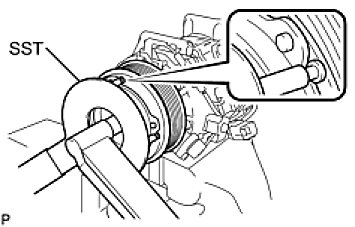 (h) Using SST, hold the magnetic clutch hub and install the bolt.