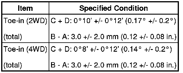 - The toe-in will change by the following amount corresponding to each graduation of the cam.