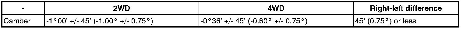 HINT: Camber is not adjustable. If the measurement is not within the specified range, inspect the suspension parts for damage and/or wear, and replace them if necessary.