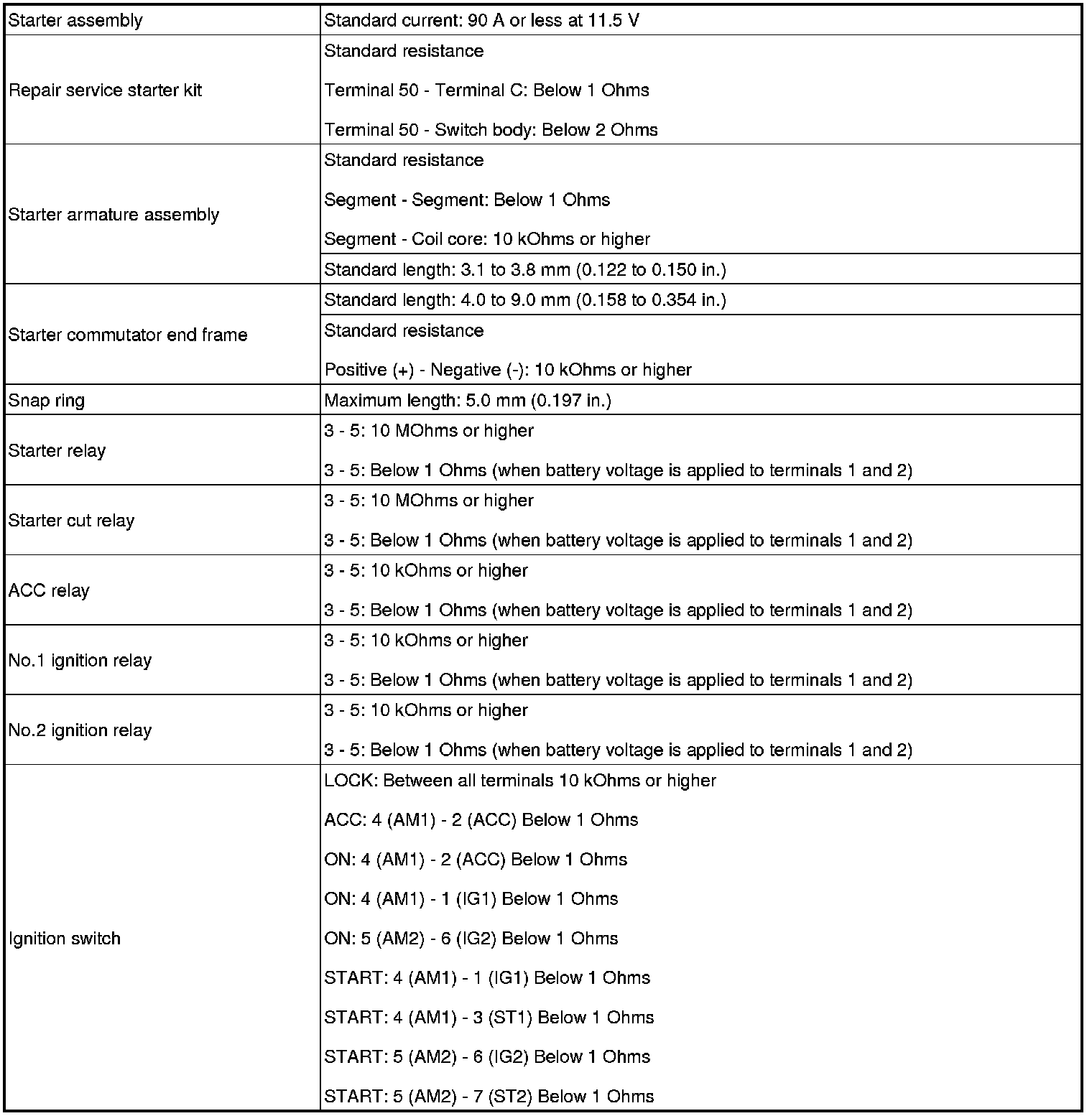 SERVICE SPECIFICATIONS: 2GR-FE STARTING: SERVICE DATA