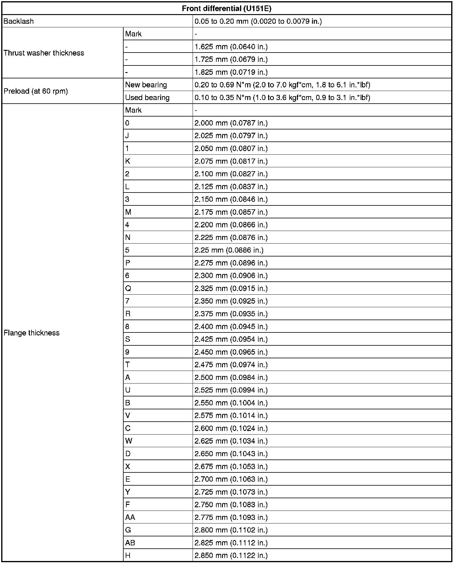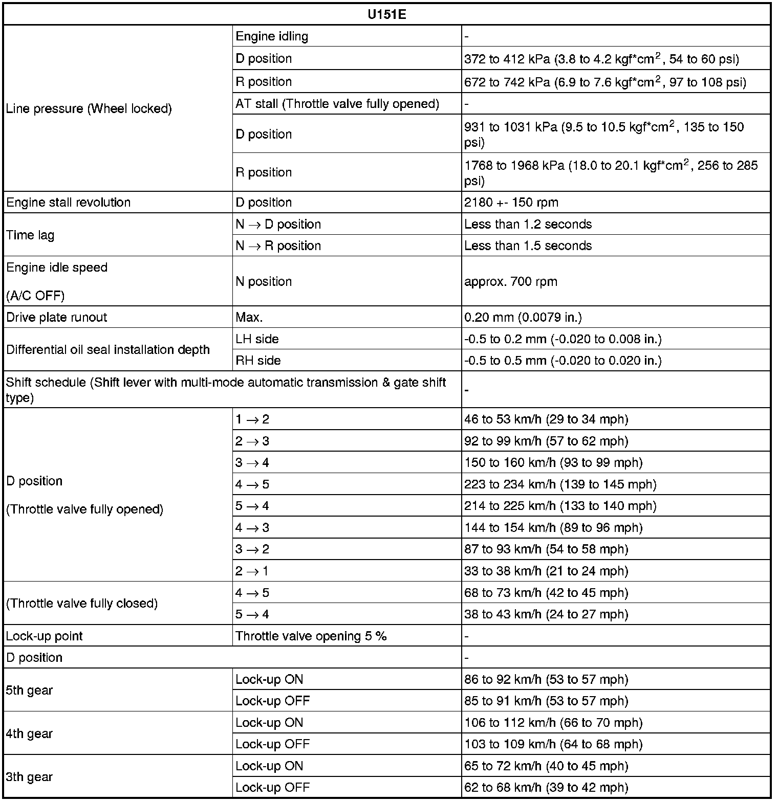 SERVICE SPECIFICATIONS: U151E AUTOMATIC TRANSAXLE: SERVICE DATA
