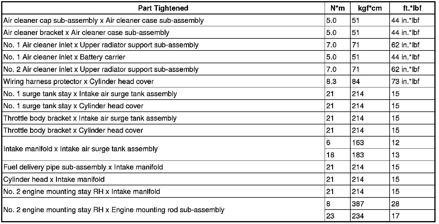 SERVICE SPECIFICATIONS: 2GR-FE INTAKE: TORQUE SPECIFICATIONS