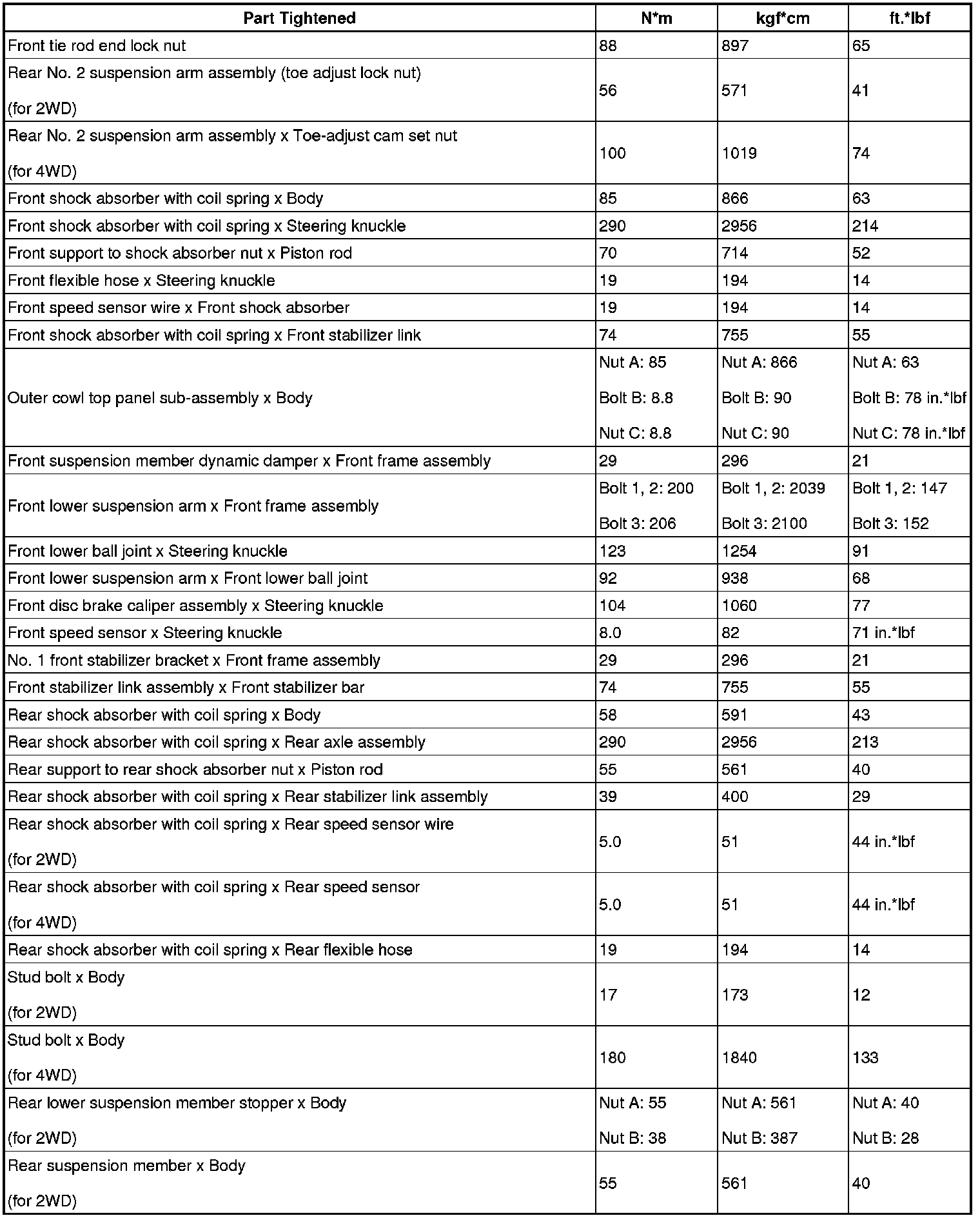 : TORQUE SPECIFICATIONS