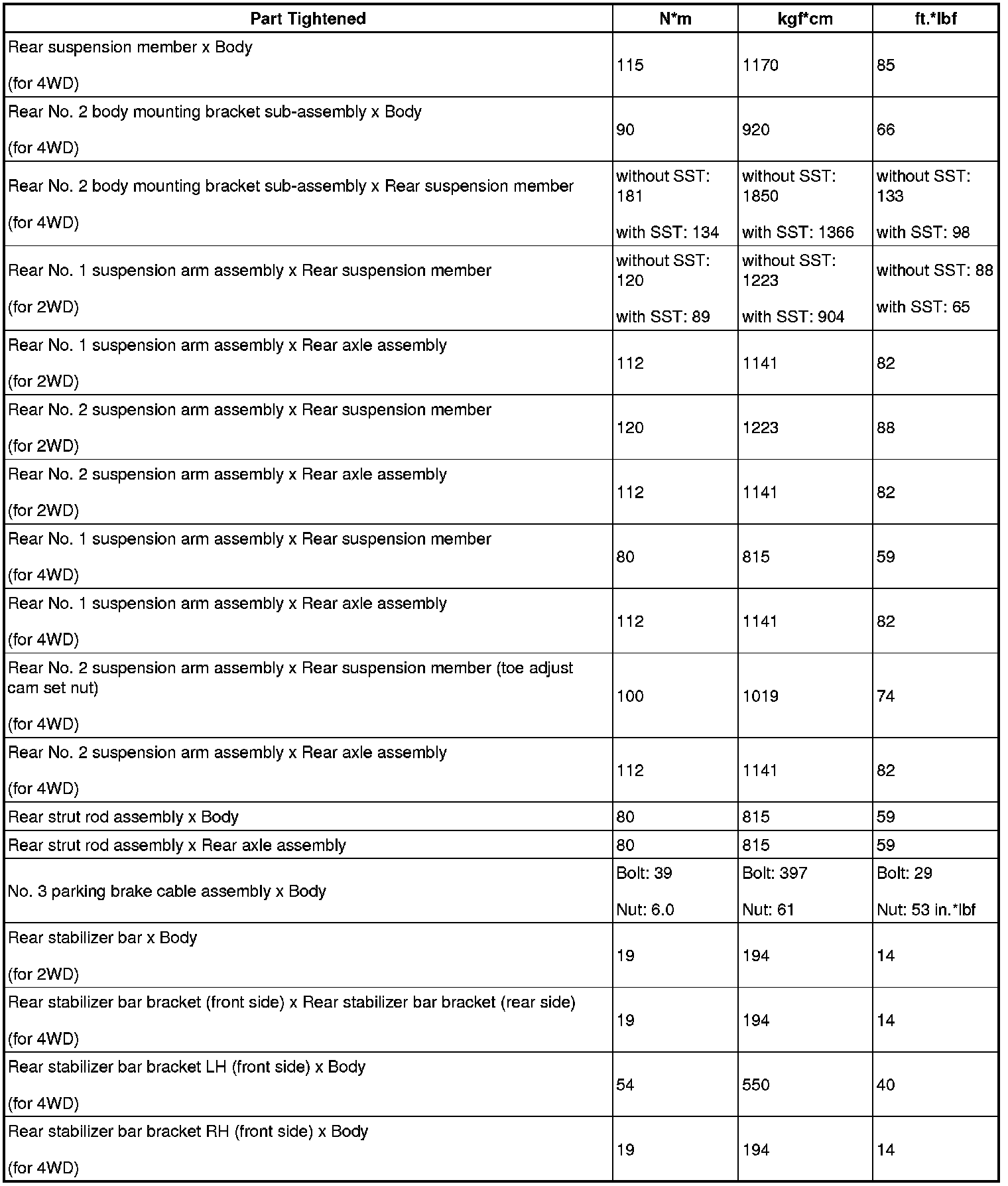 TORQUE SPECIFICATIONS