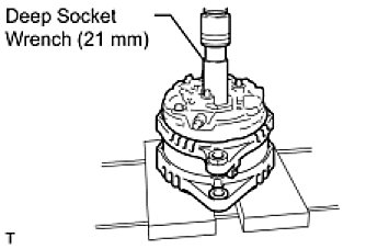 (a) Using a deep socket wrench (21 mm) and a press, slowly press in the generator coil assembly.
