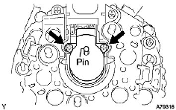 (a) While pushing the 2 brushes into the generator brush holder assembly, insert a dia1.0 mm (0.039 in.) pin into the brush holder hole.
