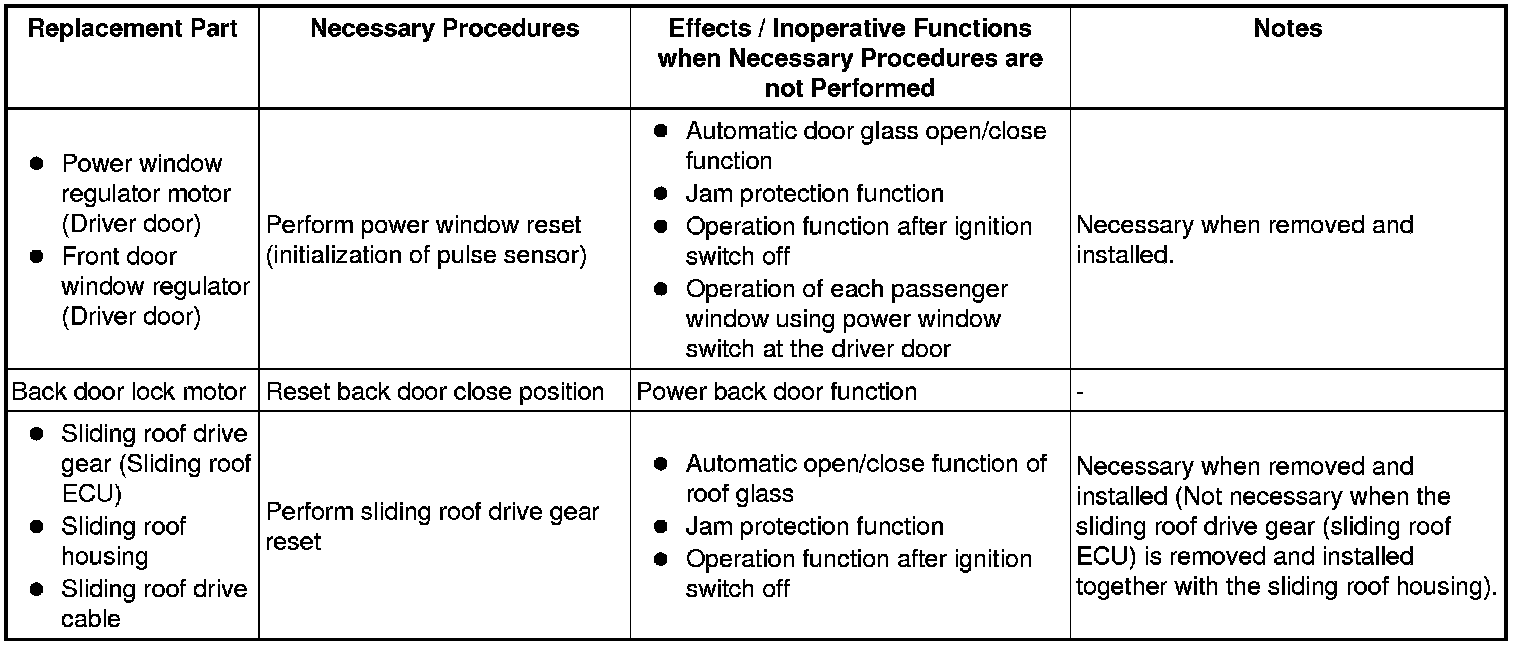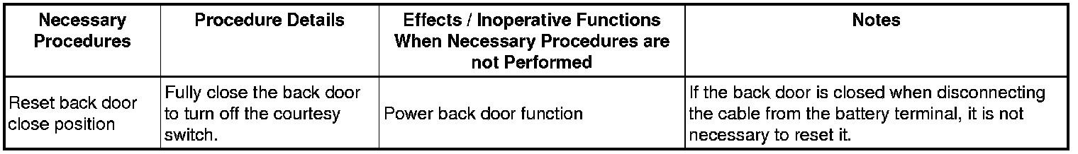 1. PROCEDURES NECESSARY WHEN BATTERY TERMINAL IS DISCONNECTED/RECONNECTED