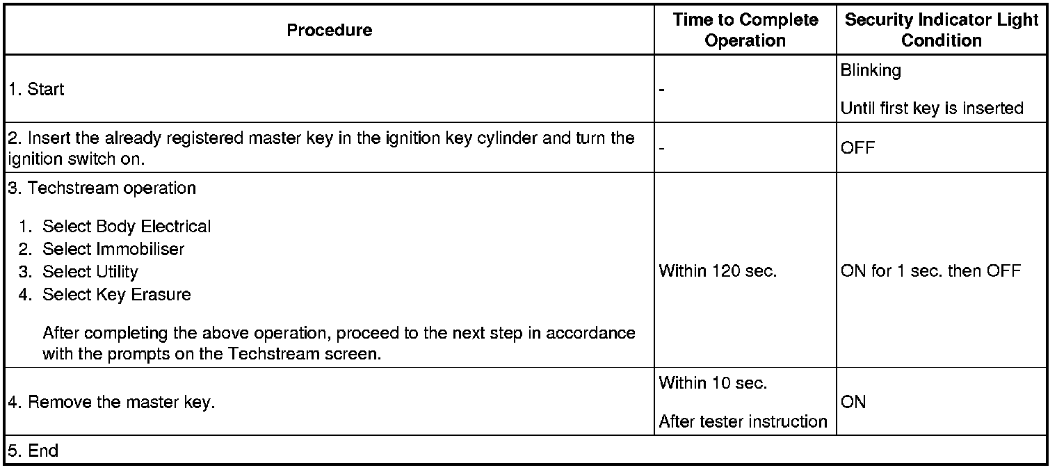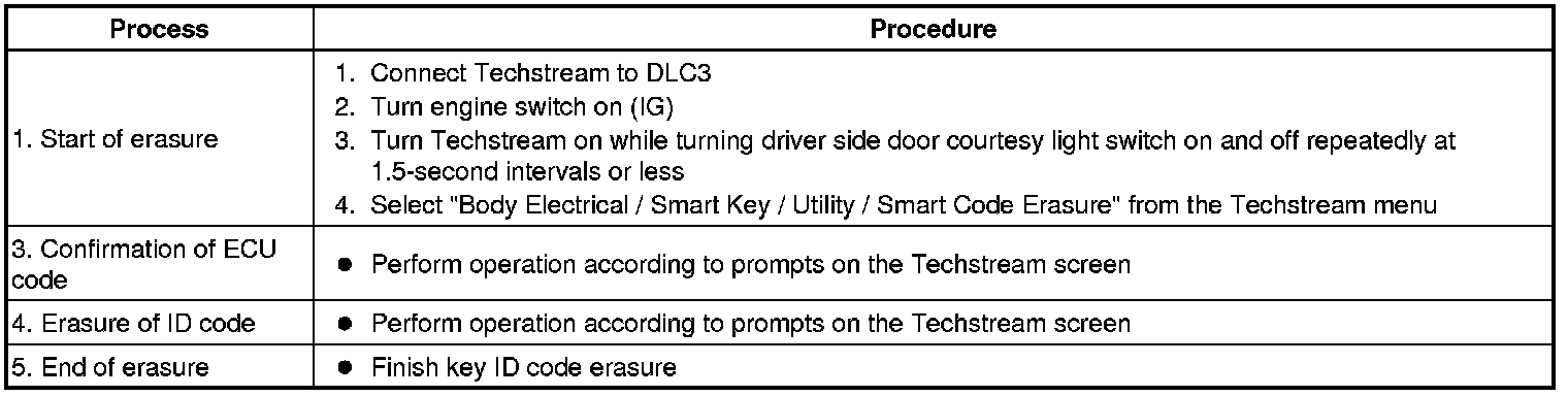 - *1: Perform this process for one of the keys registered for the vehicle. Finish the procedure within 30 seconds. If the procedure has not been finished within the specified time, perform the erasure procedures again from process 1.