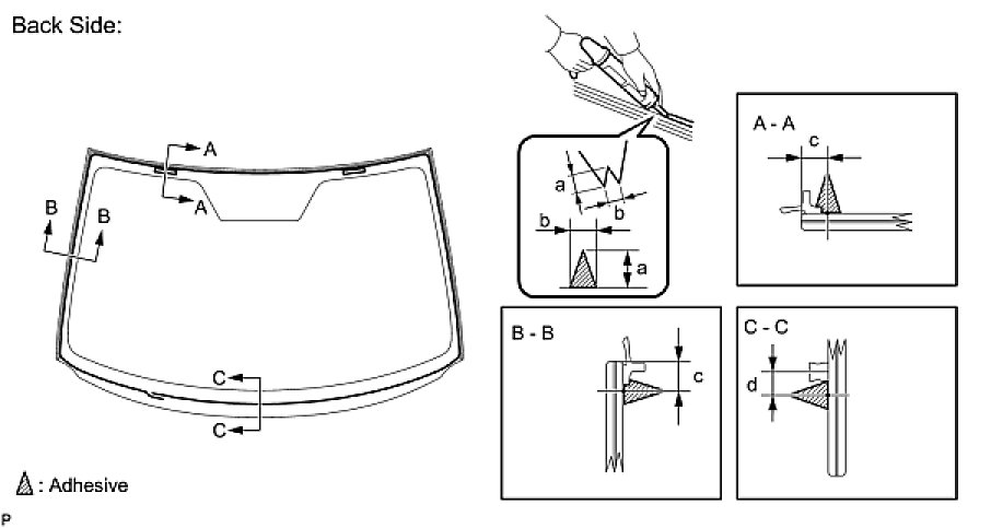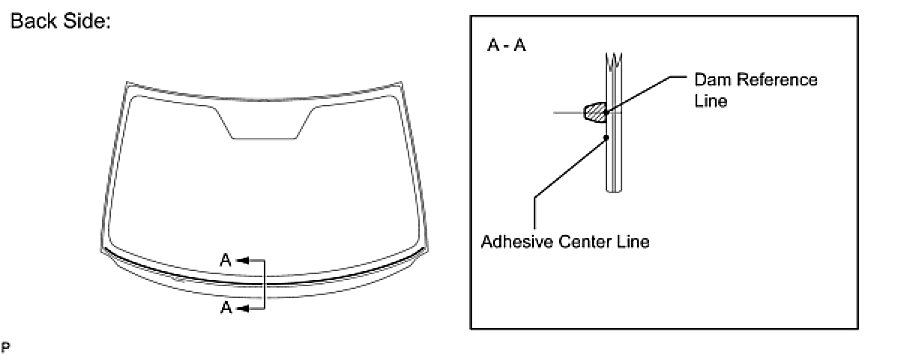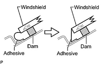 (b) Install a new window glass adhesive dam onto the windshield glass, as shown in the illustration.