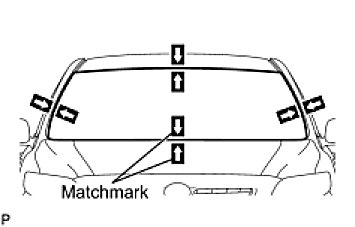 (3) Place matchmarks on the glass and vehicle body on the locations indicated in the illustration.