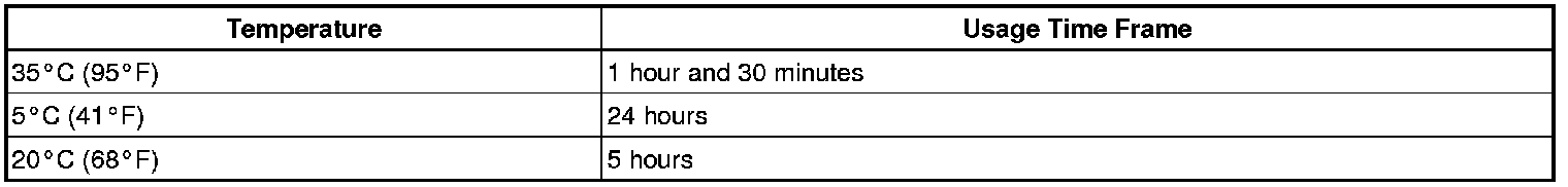 HINT: After cutting off the tip, use all adhesive within the time written in the table below.