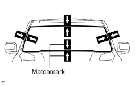 (3) Place matchmarks on the glass and vehicle body on the locations indicated in the illustration.