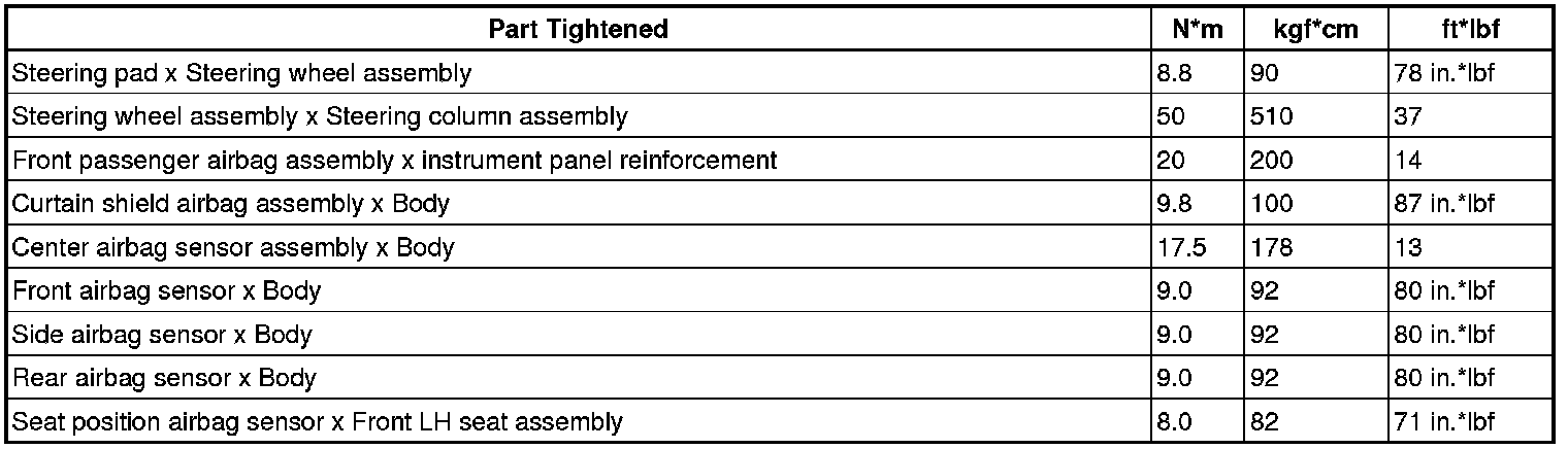 SERVICE SPECIFICATIONS: SUPPLEMENTAL RESTRAINT SYSTEM: