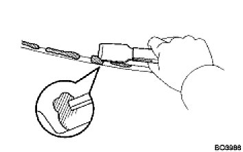 (b) From the interior, insert a piano wire between the vehicle body and glass.