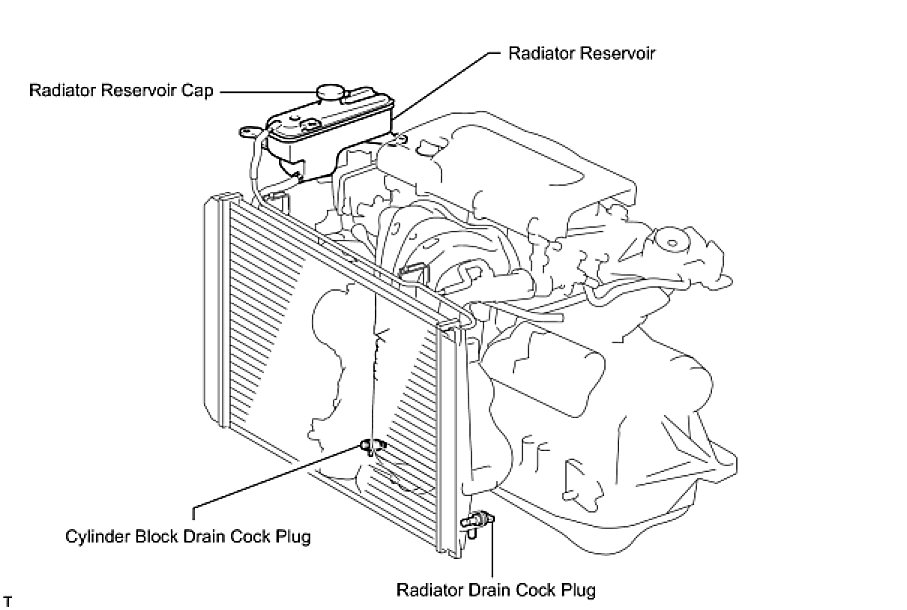 - Immediately after starting the engine, if the radiator reservoir does not have any coolant, perform the following: 1) stop the engine, 2) wait until the coolant has cooled down, and 3) add coolant until the coolant is filled to the B line.