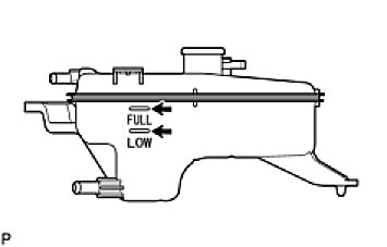 If the coolant level is above the FULL line, drain coolant so that the coolant level is between the FULL and LOW line.