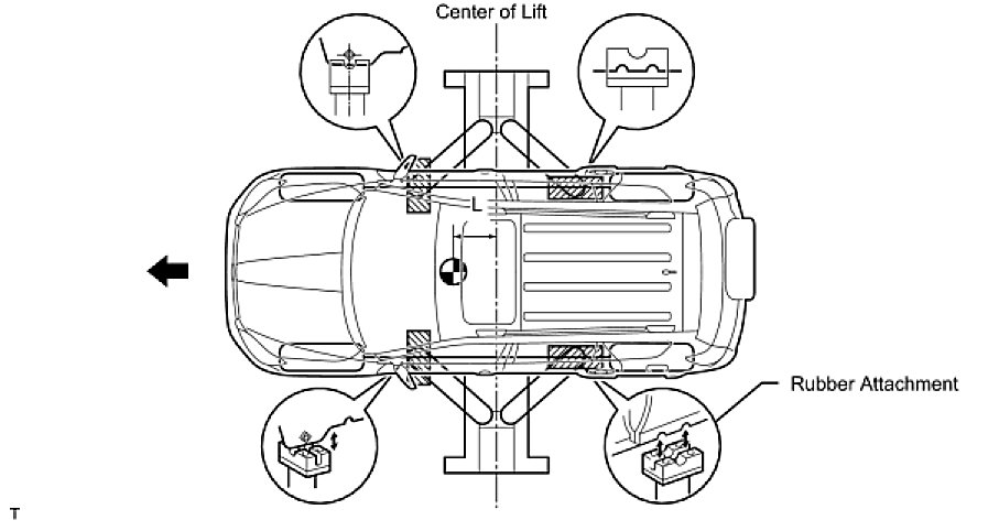 (d) When using the lift, its center should be as close to the vehicle's center of gravity as possible (length of "L" in the illustration should be as short as possible).