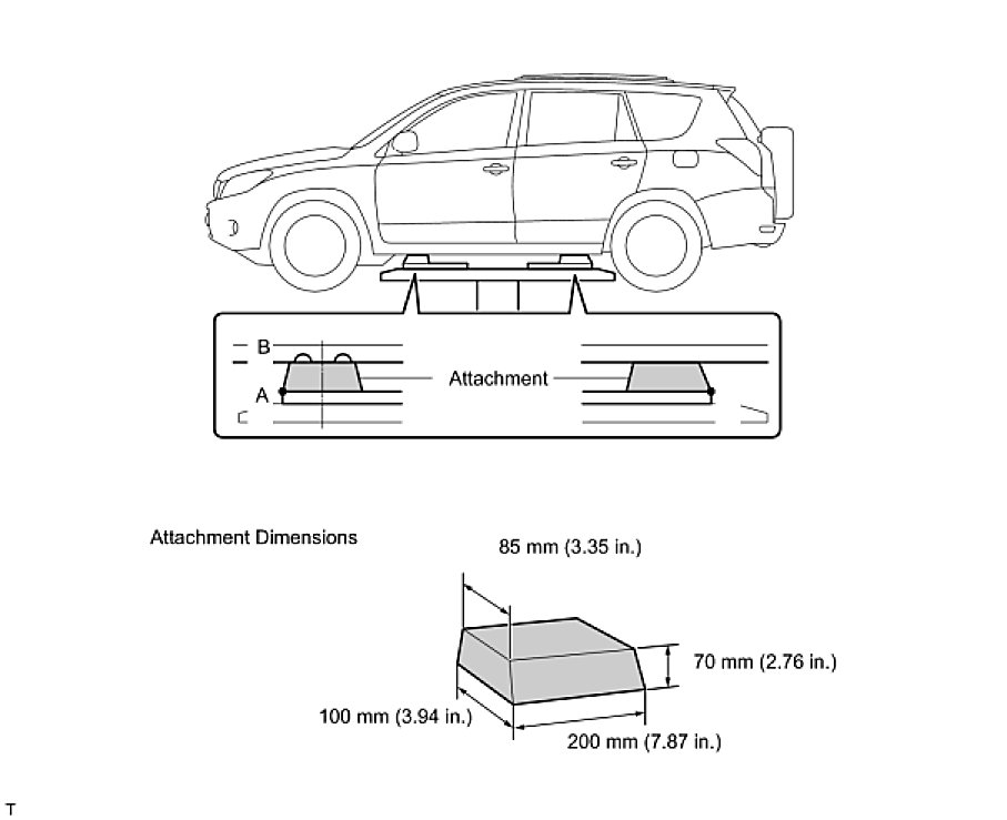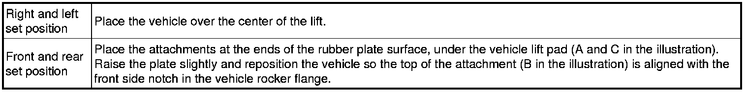 (e) Set the vehicle on the lift as level as possible. Then match the groove of the cradle to the rigid rack support location.