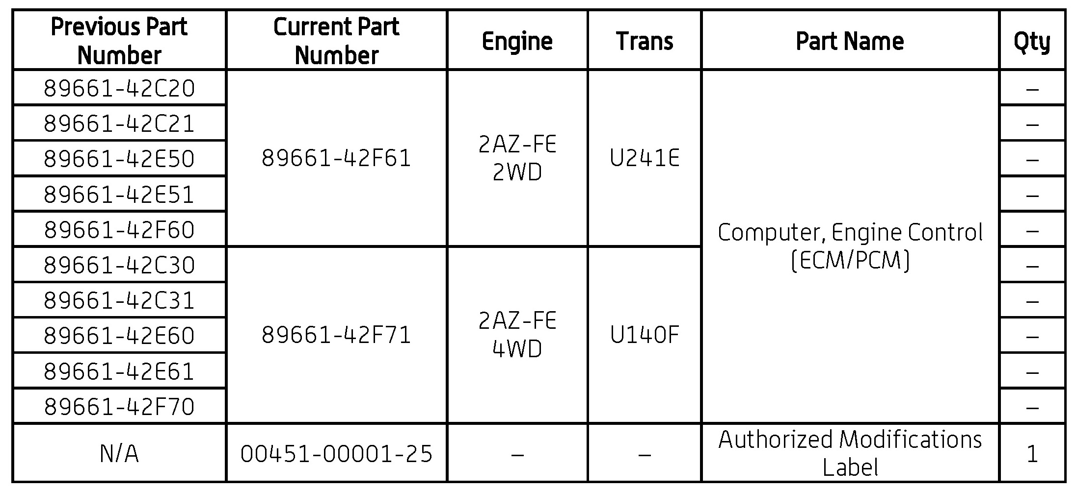 - ECM part number [Refer to the Parts Information section for the CURRENT PART NUMBER]