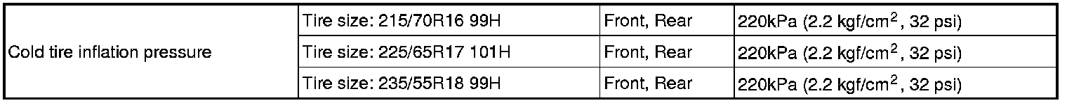 SERVICE SPECIFICATIONS: TIRE AND WHEEL: SERVICE DATA