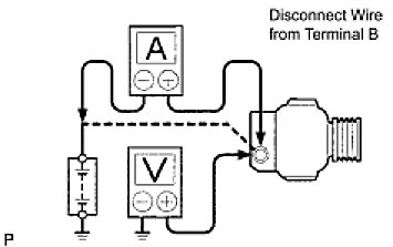 (1) Disconnect the wire from terminal B of the generator, then connect it to the negative (-) lead of an ammeter.