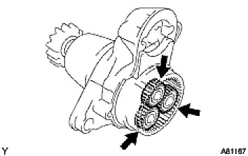 (a) Remove the 3 planetary gears from the starter drive housing.