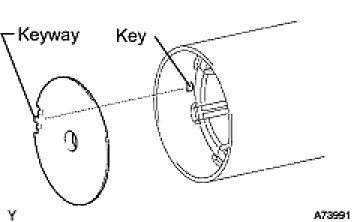 (b) Align the keyway of the starter plate with the key inside the starter yoke, and install the starter plate.