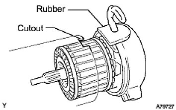 (a) Align the rubber of the end frame with the cutout of the starter yoke.