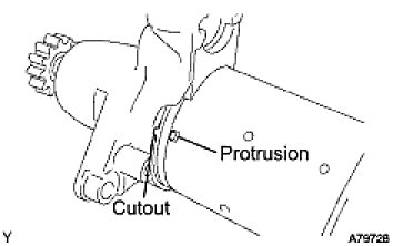 (a) Align the protrusion of the starter yoke with the cutout of the starter drive housing.