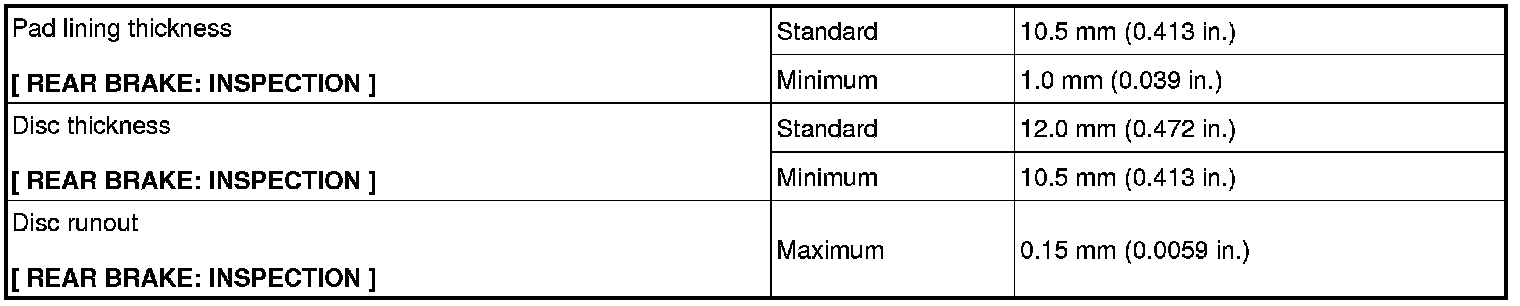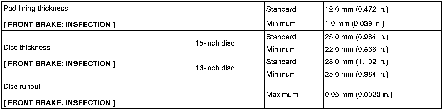 SERVICE SPECIFICATIONS: BRAKE: SERVICE DATA