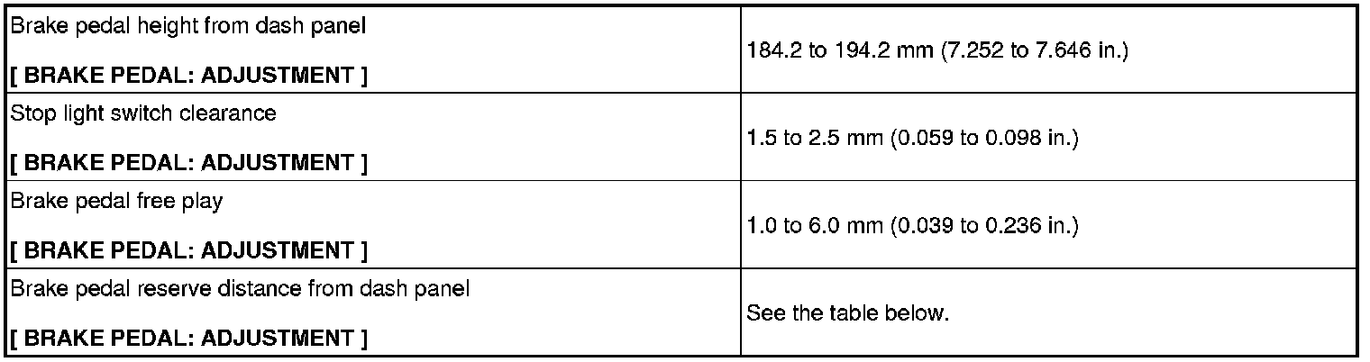 Brake Pedal Reserve Distance from Dash Panel