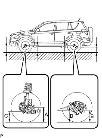 - If the vehicle height is not as specified, press down on the vehicle several times to stabilize the suspension. Then measure the vehicle height again.