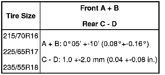 NOTE: Before inspecting the wheel alignment, adjust the vehicle height to the specification.