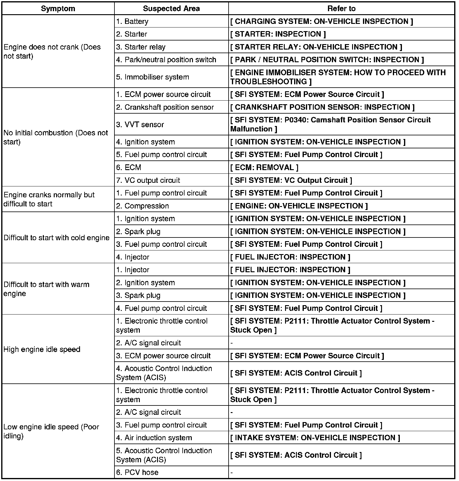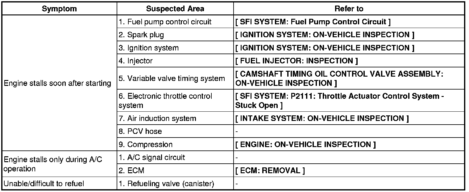 2GR-FE ENGINE CONTROL SYSTEM: SFI SYSTEM: PROBLEM SYMPTOMS TABLE