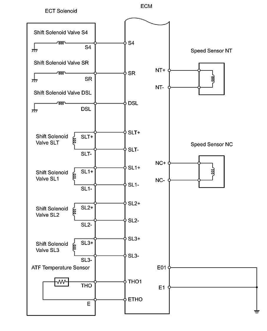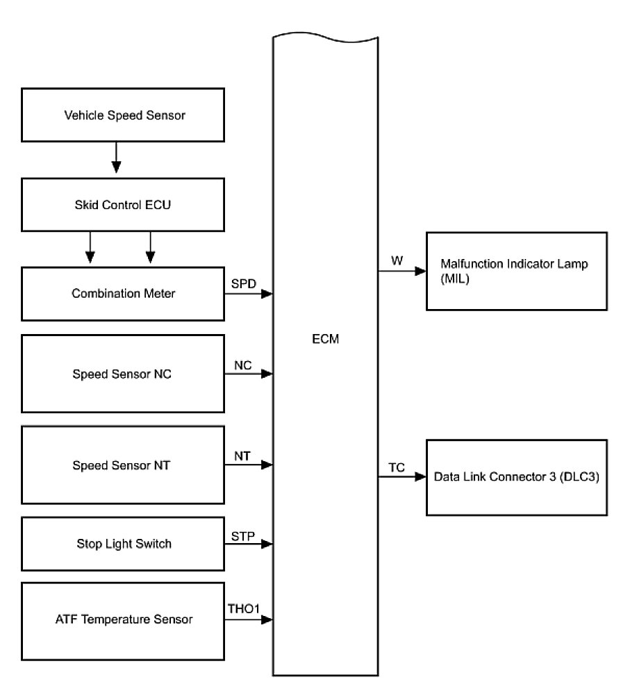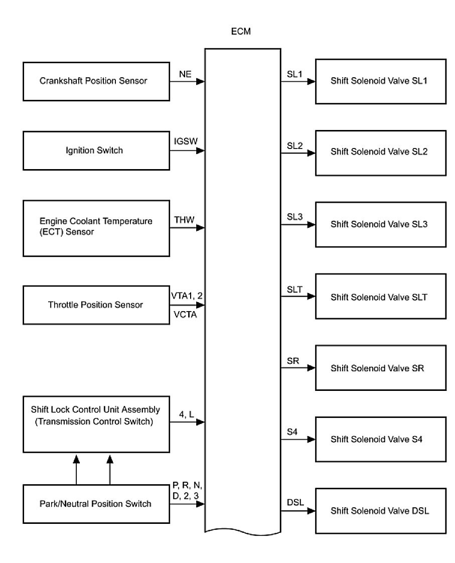 The configuration of the electronic control system in the U151E automatic transaxle is as shown in the following chart.