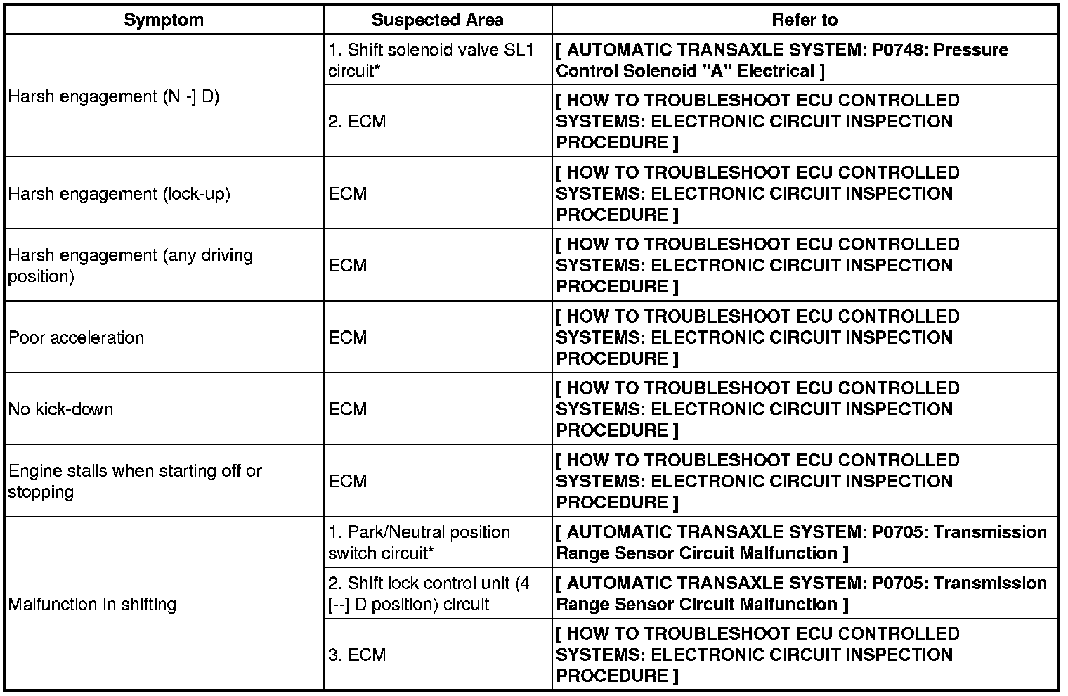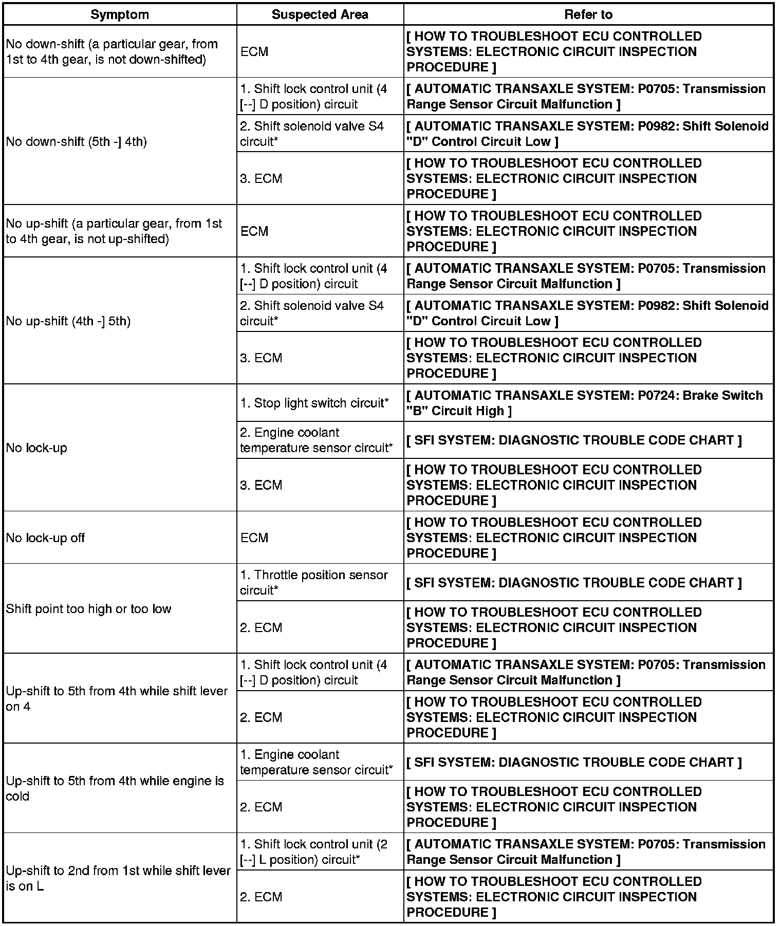 U151E AUTOMATIC TRANSAXLE: AUTOMATIC TRANSAXLE SYSTEM: PROBLEM SYMPTOMS TABLE