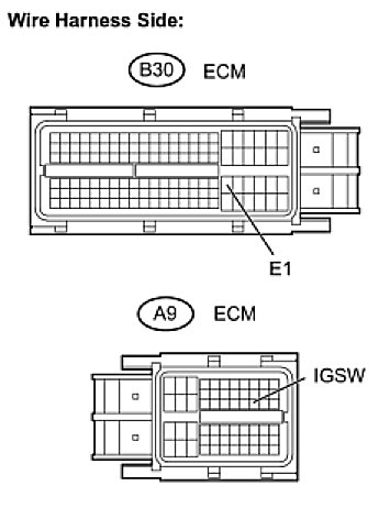 (c) Measure the voltage between the terminals of the B30 and A9 ECM connectors.