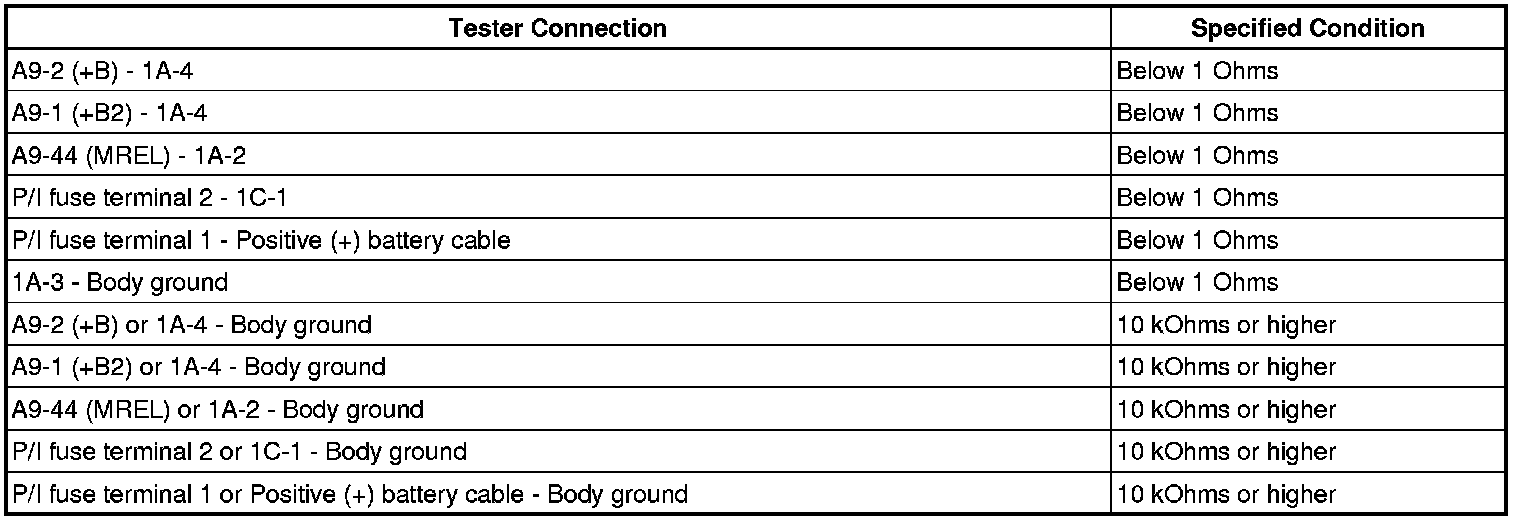 (c) Measure the resistance between the terminals of the IG2 relay.
