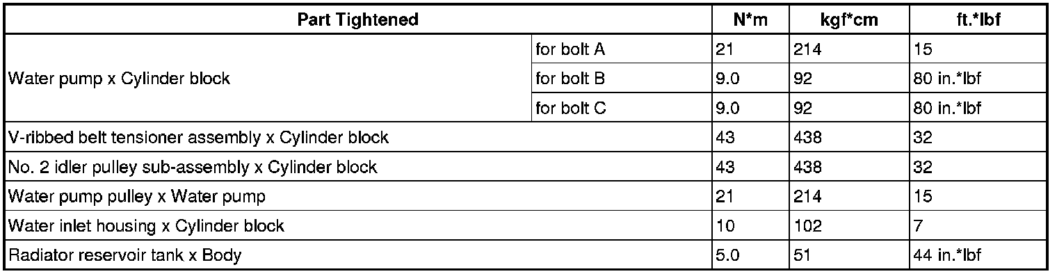 SERVICE SPECIFICATIONS: 2GR-FE COOLING: TORQUE SPECIFICATIONS