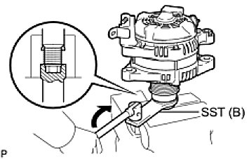 (d) Turn SST (B) clockwise to loosen the pulley.