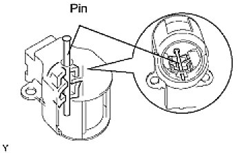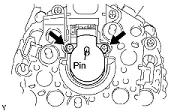 (a) While pushing the 2 brushes into the generator brush holder, insert a dia 1.0 mm (0.039 in.) pin into the generator brush holder.